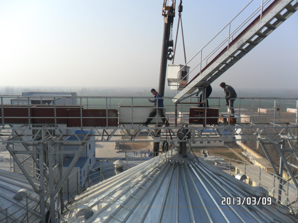 1、通風(fēng)系統(tǒng),倉頂安裝自然通風(fēng)窗、引風(fēng)機(jī),錐底安裝鼓風(fēng)機(jī),引流空氣到倉內(nèi)循環(huán),保護(hù)糧食不受潮,極大的保證了倉內(nèi)糧食的質(zhì)量。